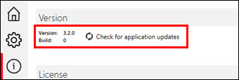 Online application updates can be triggered (check, download and installation) in tab About.