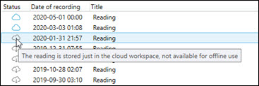 In the list-box Readings, the status of each Reading is indicated. Hover over it to get a detailed description: